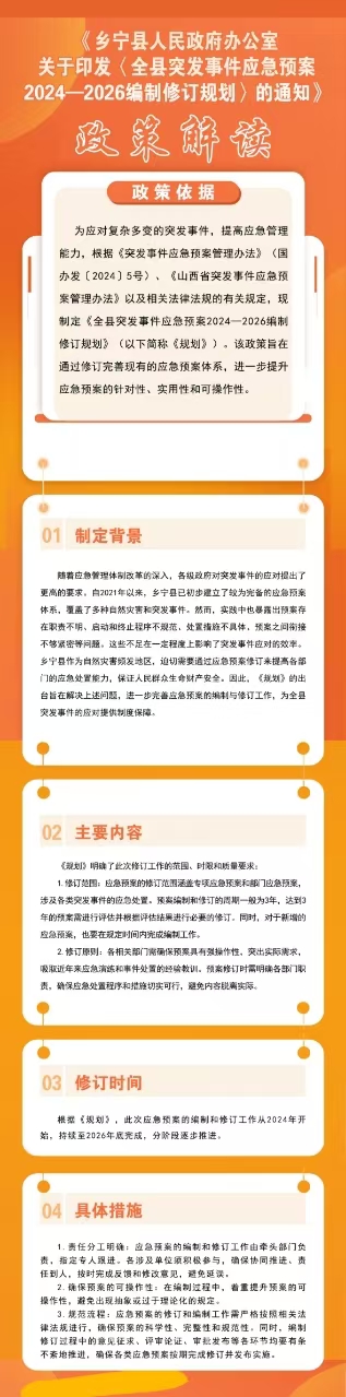 【圖解】鄉寧縣人民政府辦公室關于印發《全縣突發事件應急預案2024-2026編制修訂規劃》的通知